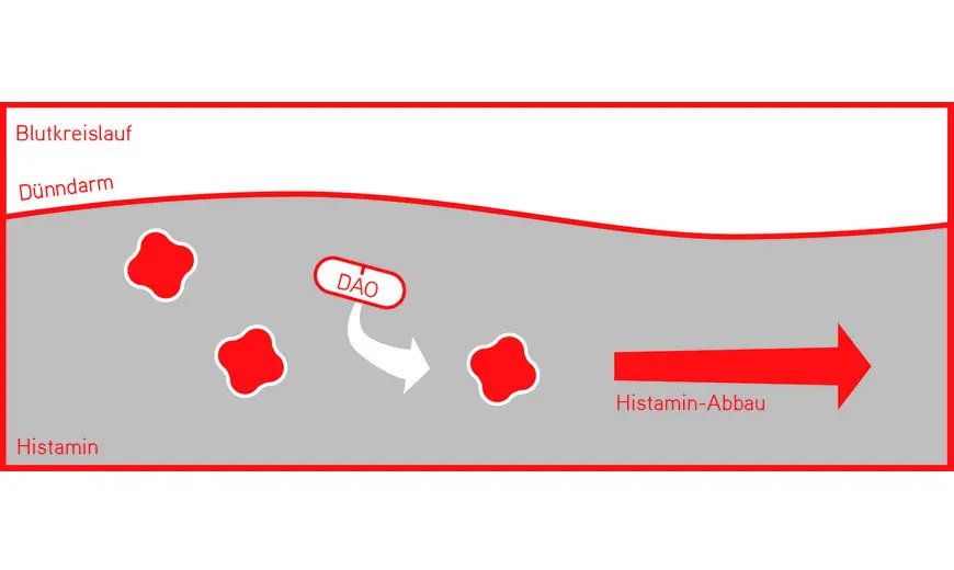 If there is no or insufficient DAO enzyme, the body cannot break down histamine adequately. It enters the bloodstream via the intestinal mucosa and causes many different types of complaint.
