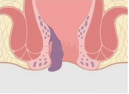 Je kunt de aambeien niet meer terugduwen; ze zijn continu uitwendig zichtbaar.