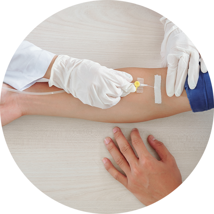 bij het voorkomen en behandelen van verwikkelingen bij infiltraties door infusies of injecties in een ader.