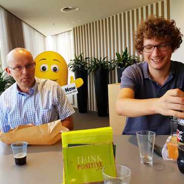 Door de onverwachte vergadering komen we pas laat aan lunchen toe. Zelfs de meeste collega’s met de late shift zijn al klaar met eten!