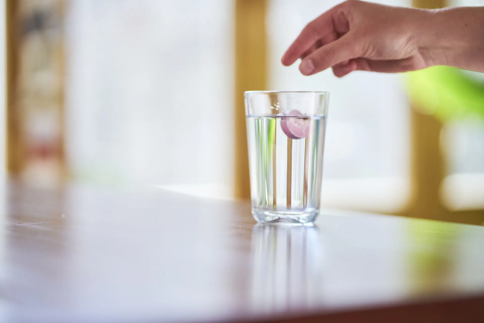 De bruistablet los je op in een volledig glas water. Zo drink je sowieso al twee volle glazen water per dag. Er wordt namelijk aangeraden om tijdens een blaasontsteking minstens 2 liter water per dag te drinken om het plassen te vergemakkelijken.