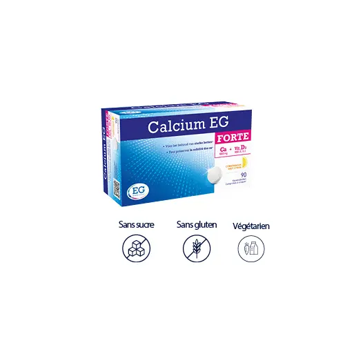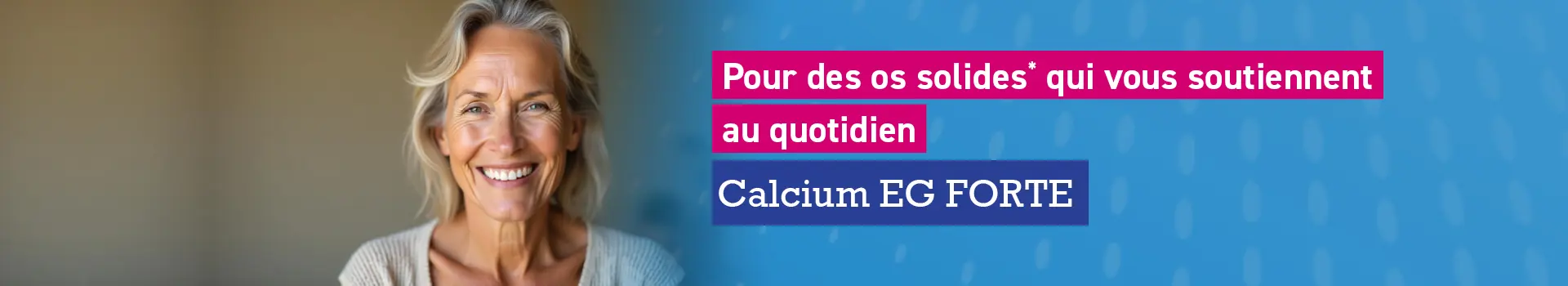 Grâce à sa teneur en calcium et en vitamine D3, Calcium EG FORTE favorise et préserve la solidité des os et des dents*.