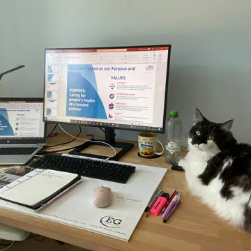 Aujourd’hui, je travaille de la maison, mais la matinée je suis en externe.