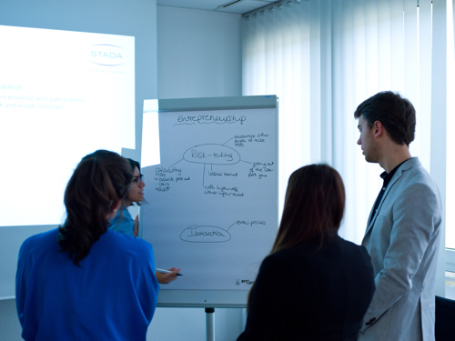 Le programme est divisé en plusieurs partie. La première partie est la session développement qui a lieu au sein de STADA en Allemagne. Pendant plusieurs jours, on fait connaissance avec les collègues et on participe à des workshops interactifs sur le leadership. On fait également connaissance avec le comité de direction et avec ce groupe diversifié, on développe un business case innovateur.