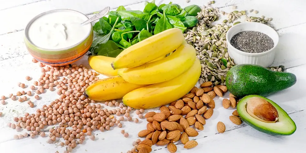 De aanbevolen dagelijkse hoeveelheid magnesium ligt bij vrouwen rond de 300 mg en bij mannen rond de 350 mg.2 Gelukkig zijn sommige voedingsmiddelen - zoals cacao en pure chocolade, avocado’s, bananen, noten, peulvruchten en volkoren granen - rijk aan magnesium. Meestal volstaat gezond en gevarieerd eten dan ook om de onaangename symptomen van een magnesiumtekort te vermijden.