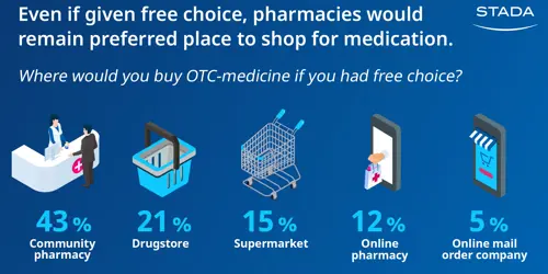 43% van de Europeanen koopt nog steeds het liefst geneesmiddelen in een fysieke apotheek (in België zelfs 45%)