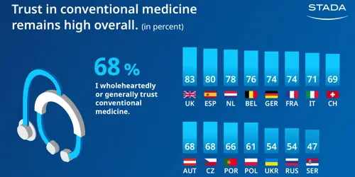 Europeanen rekenen op conventionele geneeskunde en gezondheidszorgsystemen, Belgen zijn koplopers wat betreft hun vertrouwen in artsen en de tevredenheid van het gezondheidssysteem.