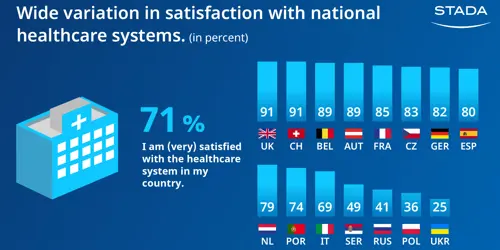- 71 % van de Europeanen blijft tevreden over hun zorgstelsel. Voor de Belgen is dit zelfs 89%
