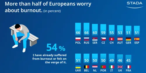 - Europeanen die zelf aangeven risico te hebben op burn-out blijft hoog op 54 procent