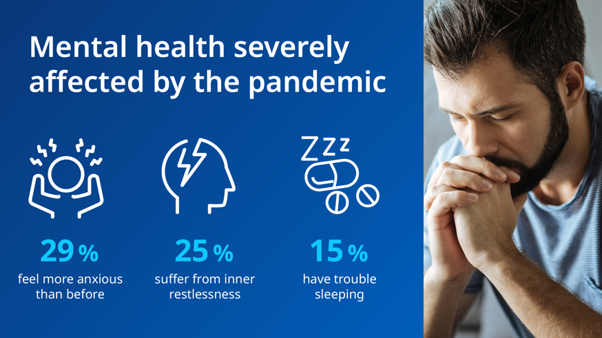Covid heeft een behoorlijke tol geëist van de Europeanen: Van eindeloze lockdowns, contact- en bewegingsbeperkingen, of de voortdurende angst om zelf of een dierbare ziek te worden van het virus, tot thuiswerken terwijl men voor de kinderen (en zichzelf) zorgt, en ondanks alles doorgaan met het leven terwijl je je over het algemeen probeert in te houden. Het resultaat na één jaar Corona: 1 op de 4 Europeanen voelt zich extreem gestrest, zo erg dat ze moeite hebben om tot rust te komen. 1 op 3 ervaart een verhoogde angst als gevolg van de pandemie.