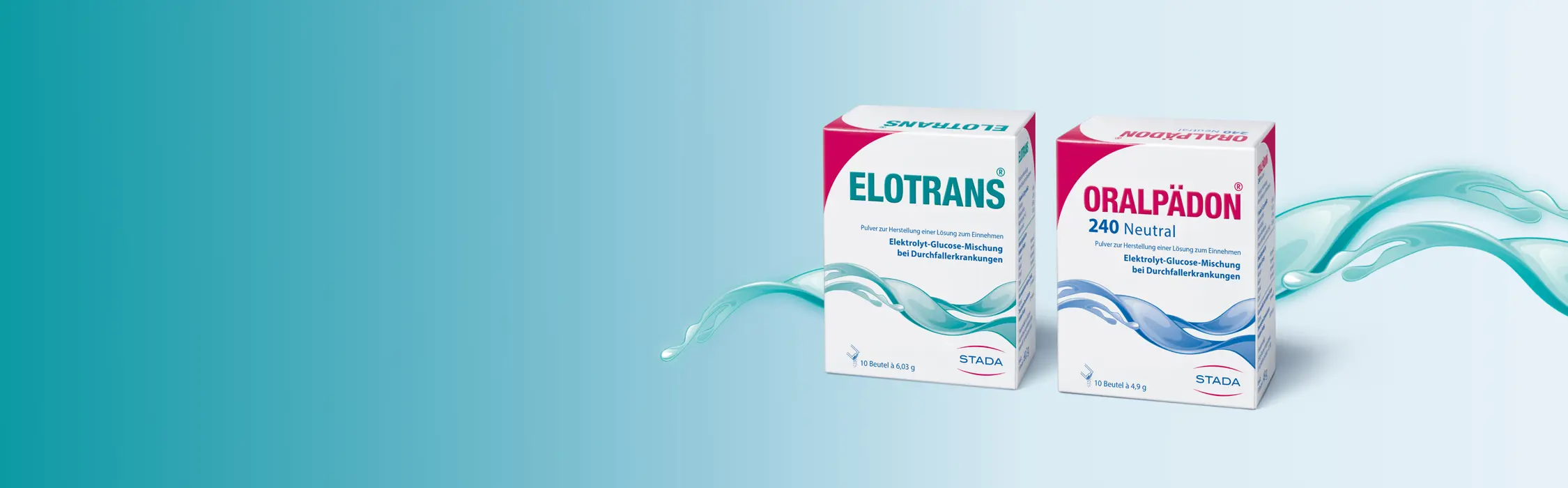 Especially in babies and children, diarrhoea and the associated loss of fluid can quickly have serious consequences. Therefore, it is particularly important to quickly ensure a stable water and electrolyte balance. This can be achieved by drinking electrolyte solutions: Comparable to ELOTRANS®, the composition of ORALPÄDON® is specially tailored to the needs of children.