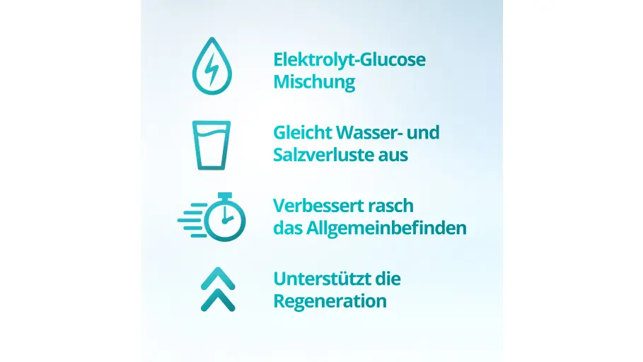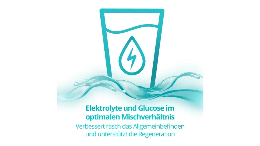 Dissolve the contents of one sachet in 200 ml of drinking water. The resulting ELOTRANS® solution provides your body with important salts, minerals and glucose. The addition of glucose promotes the absorption capacity of electrolytes in the intestine in order to support regeneration in the best possible way.