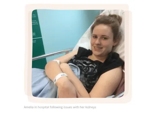 Amelia was born with a rare condition which made her lose 70% of her blood. Her kidneys didn't fully recover which is why she gets seriously itchy.