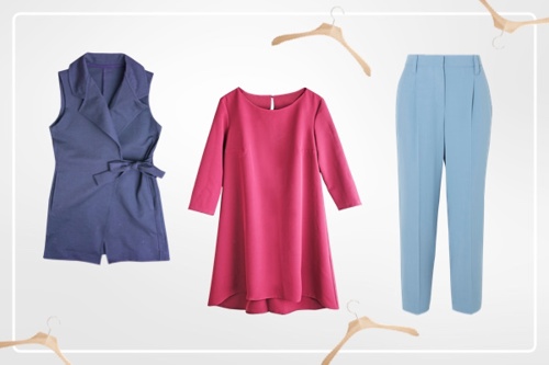 Pleats & more rigid fabrics can help to prevent fabric clinging to your body if you start sweating.