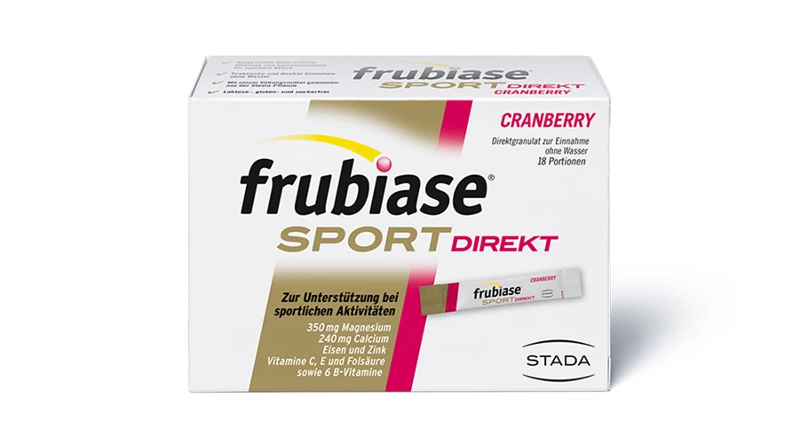 Laufen, Radfahren, Schwimmen oder Wandern – die Hauptsache ist, aktiv sein und bleiben! Besonders wichtig ist es dabei, darauf zu achten, dass der Körper zurückerhält, was er bei sportlichen Aktivitäten an Mineralstoffen, Vitaminen und Spurenelementen verbraucht hat. frubiase® SPORT DIREKT unterstützt die Versorgung mit diesen Nährstoffen. Es trägt zur Verringerung von Müdigkeit und Ermüdung während des Sports sowie zum Erhalt der normalen Muskelfunktion und dem Energiestoffwechsel bei. Zusätzlich trägt es dazu bei, die Zellen vor oxidativem Stress zu schützen.