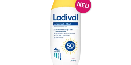Tipp: Bei Neigung zu Sonnenallergie unbedingt die emulgatorfreie Ladival® Allergische Haut Aprés-Pflege verwenden, da Emulgatoren bis zu 24 Stunden in der Haut verbleiben können.
