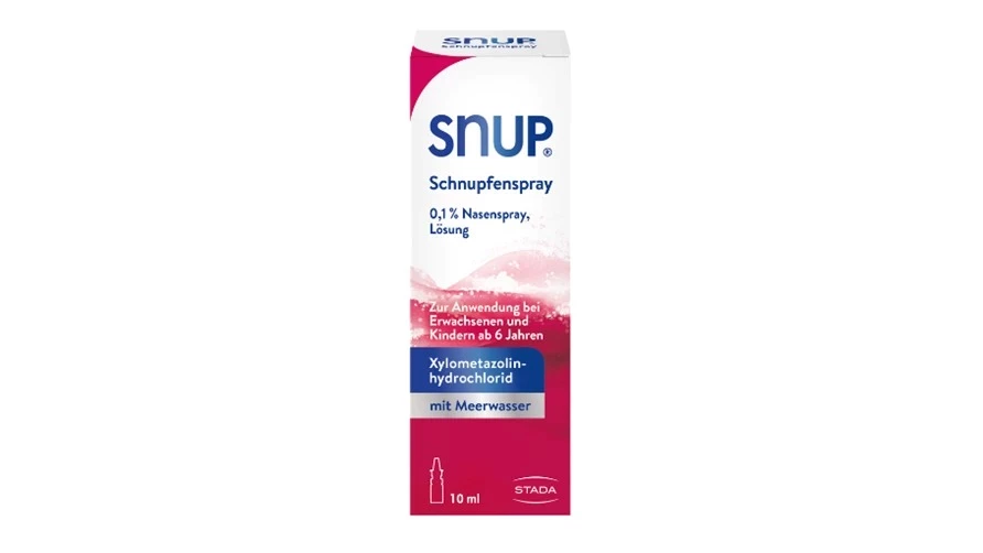 Die Folgen eines Virusschnupfens sind nicht nur unangenehm, sondern sie verhindern auch einen erholsamen Schlaf. Bei einer Infektion schwillt die Nasenschleimhaut an, die Nase läuft oder ist verstopft, die Atmung ist erschwert. Der in SNUP® Schnupfenspray enthaltene Wirkstoff Xylometazolinhydrochlorid verengt die Blutgefäße in der Nase und lässt so die Nasenschleimhaut abschwellen. Zusätzlich befeuchtet das Spray die Nase mit Meerwasser. Es ist frei von Konservierungsstoffen und so besonders sanft zur Nase.