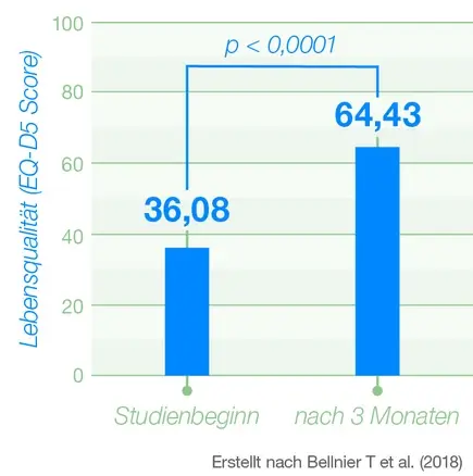 - Signifikante Verbesserung der Lebensqualität von 36 auf 64 Punkte (EQ-5D; p < 0,0001 )