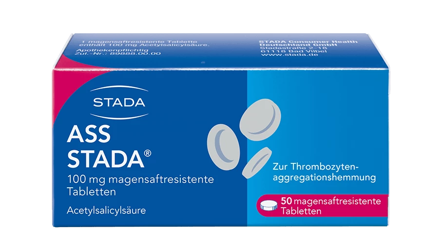 Die ASS STADA® 100 mg magensaftresistenten Tabletten enthalten Acetylsalicylsäure, welche als Wirkstoff gegenüber Thrombozyten aggregationshemmend wirkt. Als „Thrombozyten“ werden sehr kleine Zellen im Blut bezeichnet, die das Blut zum Gerinnen bringen können. Solche „Blutgerinnsel“ können bei Herzerkrankungen oder bei Patienten mit Schlaganfall in der Vorgeschichte gravierende Folgen haben.