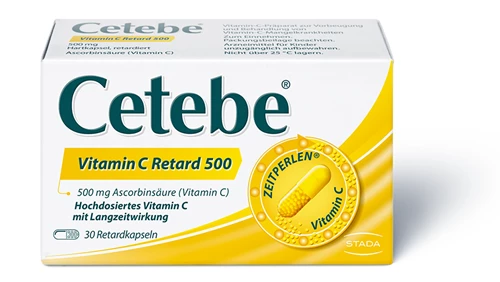 Der menschliche Körper kann Vitamin C nicht selbst herstellen. Vitamin C muss daher idealerweise über die Nahrung aufgenommen werden. Cetebe® Vitamin C Retard 500 ist ein Arzneimittel zur Vorbeugung und Behandlung von Vitamin-C-Mangel, wenn die ausreichende Zufuhr durch die Ernährung nicht gesichert ist: