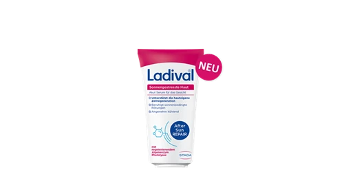 Nach einem Tag in der Sonne ist die Haut häufig besonders pflege- und regenerationsbedürftig. Ladival® Akut Beruhigungs-Serum regeneriert die sonnengestresste Haut und lässt sonnenbedingte Rötungen und Spannungsgefühle abklingen. Das natürliche Enzym Photolyase aus der Blaualge unterstützt die hauteigene Regeneration zur Vermeidung von UVB-bedingten Hautschäden. Die Haut wird beruhigt, intensiv gepflegt und auf den nächsten Sonnentag vorbereitet.