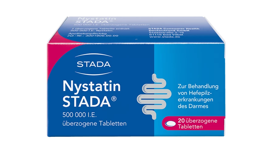 Der Wirkstoff von Nystatin STADA® ist Nystatin. Eine überzogene Tablette enthält 500.000 I. E. (Internationale Einheiten) des Wirkstoffs. Nystatin kann den Körper dabei unterstützen, Pilze aus der Candida-Gruppe zu bekämpfen, indem der Wirkstoff deren Zellwandstruktur zerstört. Das Nystatin bildet Poren und macht die Zellwand somit durchlässig. In der Folge ist der Stoffwechsel der Pilz-Zelle behindert und sie stirbt ab.