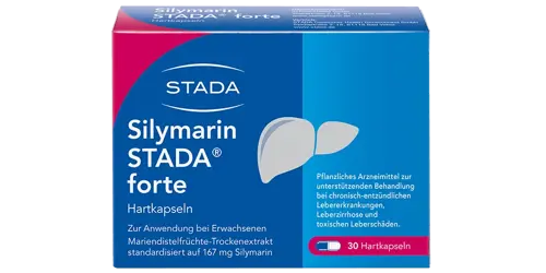 Silymarin STADA® forte, ein Trockenextrakt aus Mariendistelfrüchten, kann die Leberzellen vor Giften schützen und die Neubildung von Leberzellen anregen. Mit der Einnahme von 1 Kapsel Silymarin STADA® forte 1- bis 2-mal täglich kann die Behandlung bei chronisch-entzündlichen Lebererkrankungen, Leberzirrhose und toxischen (durch Gifte verursachten) Leberschäden unterstützt werden.