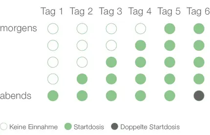 Bei der Dosierung sollte auf eine einschleichende Dosierung geachtet werden, beispielsweise wie folgt: