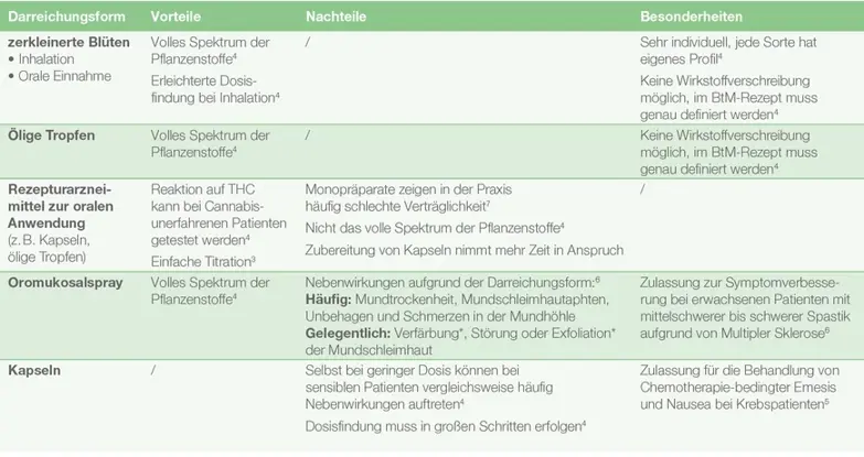 Die nachfolgende Tabelle bietet Ihnen eine Übersicht über die Vor- und Nachteile der ausgeführten Darreichungsformen und zeigt ggf. weitere Besonderheiten auf.