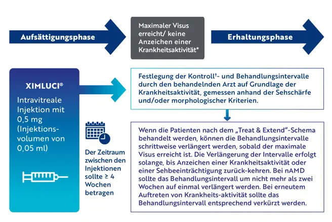 ** Die Behandlung einer Sehbeeinträchtigung sollte anhand der Krankheitsaktivität bei jedem Patienten individuell festgelegt werden. Einige Patienten benötigen nur eine Injektion in den ersten 12 Monaten; andere benötigen möglicherweise häufigere Behandlungen.
