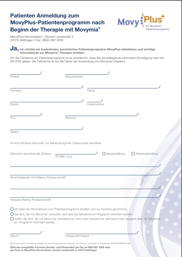 Hier finden Sie eine Vielzahl an informativen Materialien rund um das Thema Osteoporose sowie das MovyPlus+ Patientenprogramm.