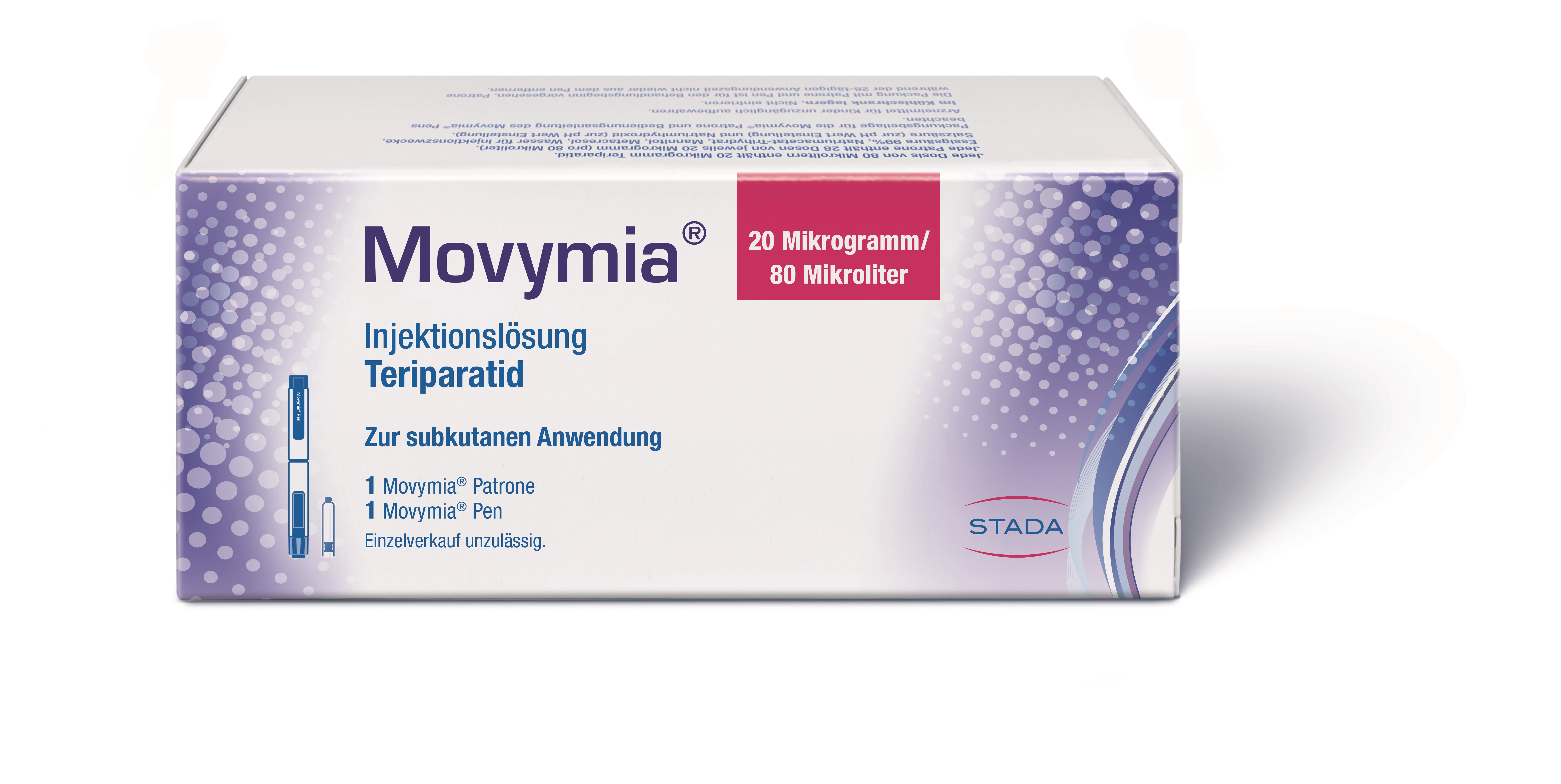 Movymia® wird zur Behandlung der Osteoporose bei postmenopausalen Frauen, bei Männern mit einem hohen Frakturrisikound der mit einer systemischen Langzeit-Glucocorticoidtherapieassoziierten Osteoporose bei Frauen und Männern mit hohem Frakturrisiko eingesetzt.1