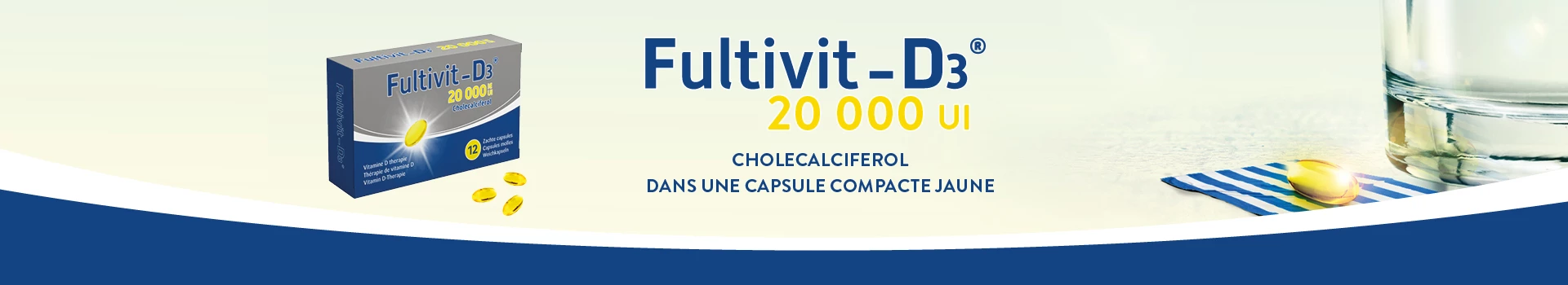 Fultivit-D3 3200 UI capsules molles (cholécalciférol) est un médicaments. Pas d'utilisation prolongée sans avis médical. Lire attentivement la notice. Ne pas utiliser chez les enfants de moins de 12 ans. Ne pas utiliser en cas d’insuffisance rénale sévère. Demandez conseil à votre médecin ou votre pharmacien. Le dosage doit être adapté individuellement par votre médecin. Titulaire de l’autorisation de mise sur le marché : EG nv/sa 09/2021