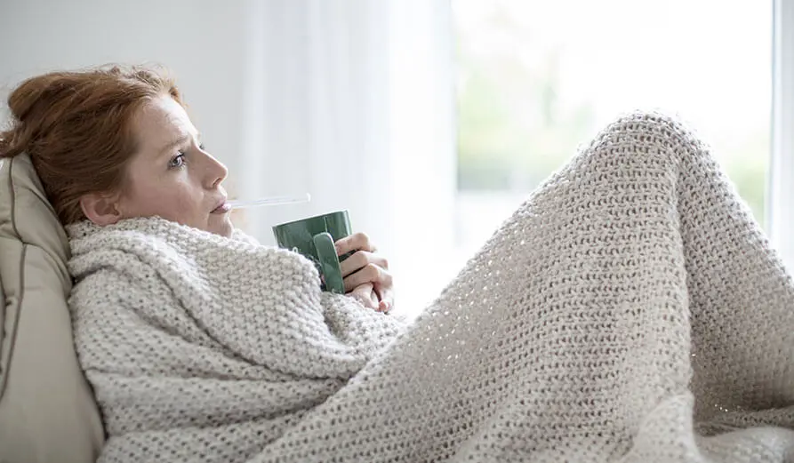 By the way: fever is often noticeable with a feeling of cold. Despite a hot forehead, we even shiver or freeze. Chills occur when our body tries to produce more heat by twitching muscles. Only later does the body temperature increase above the set point and we begin to sweat to lower the fever again.