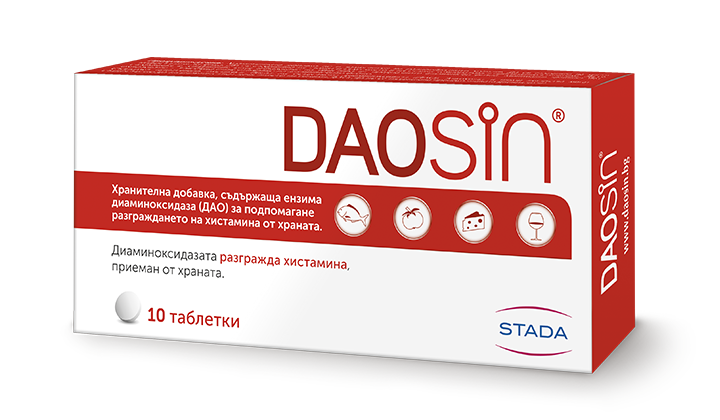 Отказали ли сте се от храните, богати на хистамин? DAOSiN® е хранителна добавка с ензима диаминоксидаза (DAO), който подпомага разграждането на хистамина от храната в червата.