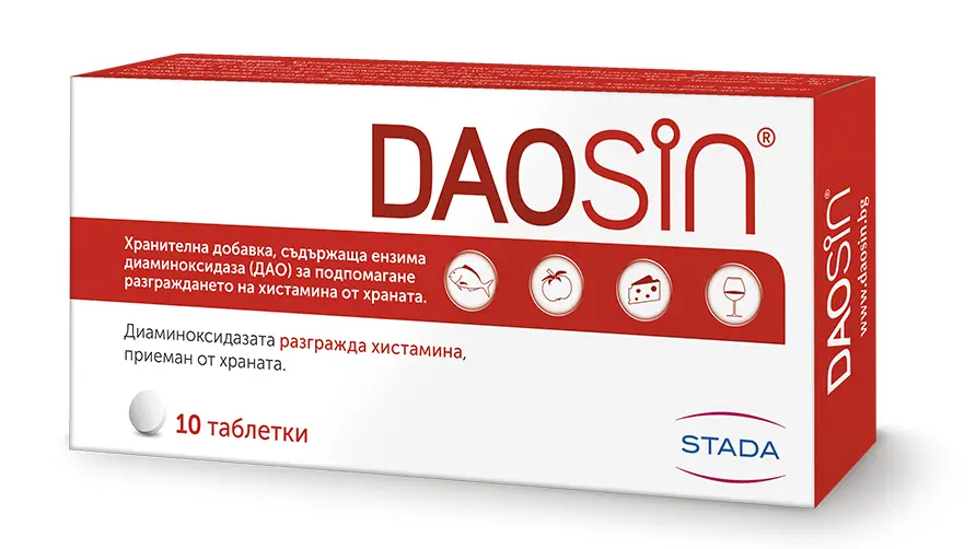 DAOSiN® е хранителна добавка с ензима диаминоксидаза (ДАО), който подпомага разграждането на хистамина от храната в червата. DAOSiN® замества вътрешния ДАO ензим, който разгражда хистамина.