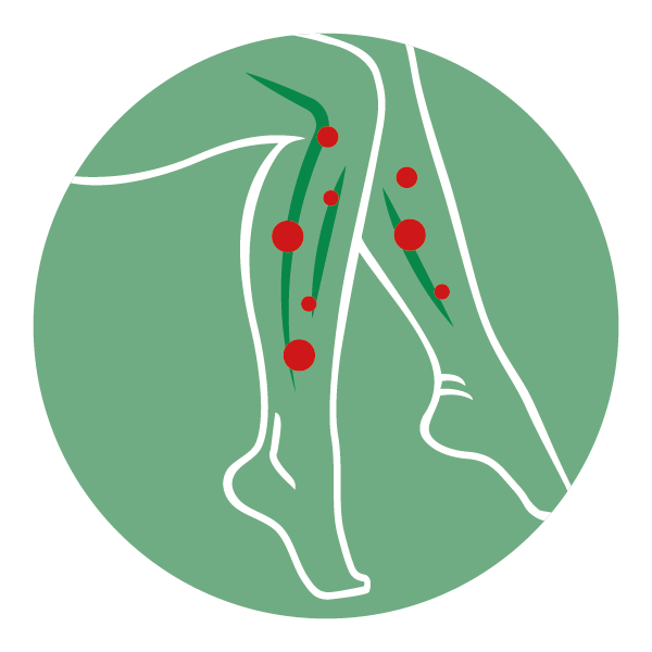 - pijnlijke en rusteloze benen en nachtelijke krampen als gevolg van een gestoorde bloedafvoer in de benen