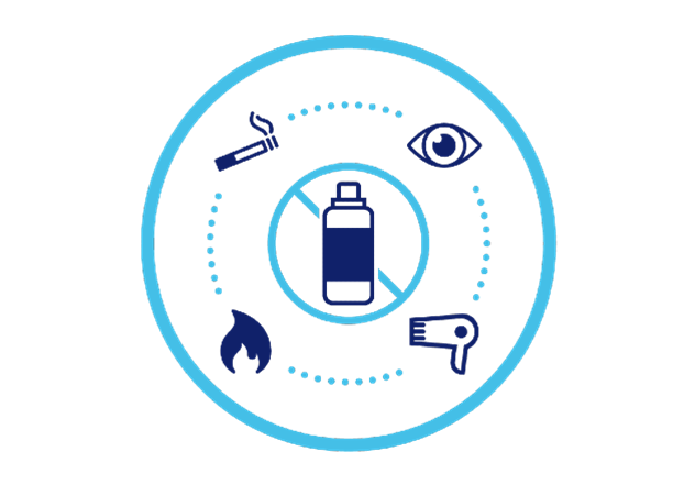 Keep lotion out of eyes and off the face — do not use the hair dryer and keep away from flames, stoves, cigarettes and other sources of heat.
