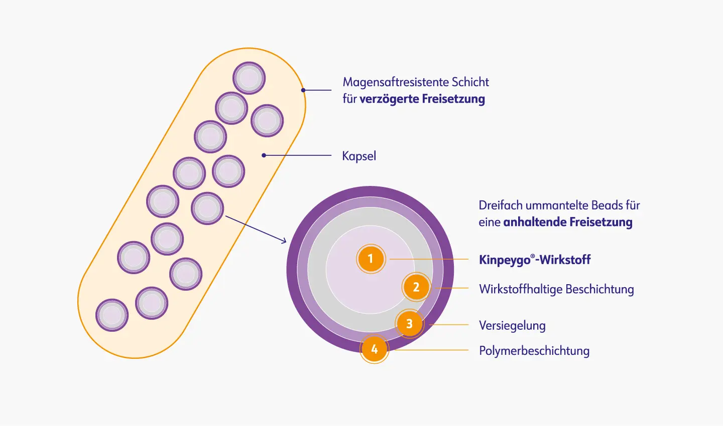 Die Wirkstoffabgabe von Kinpeygo® erfolgt dabei in zwei Schritten: