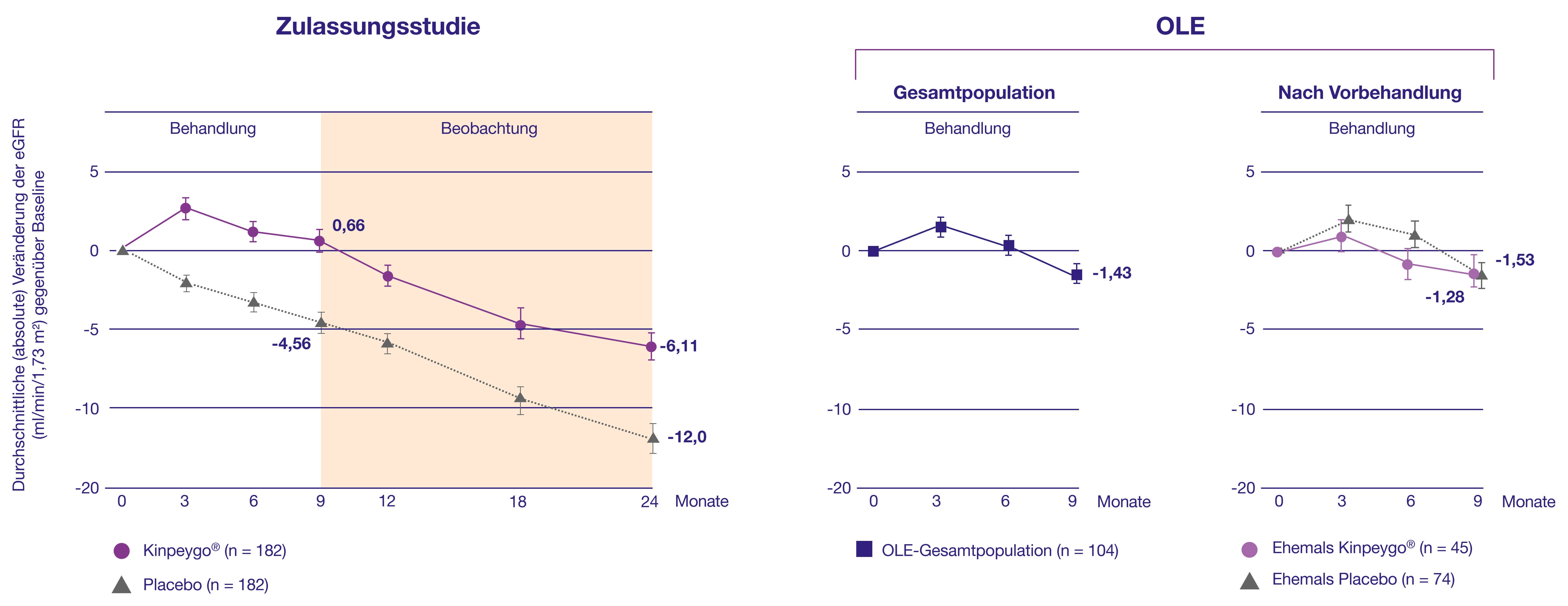 Die Behandlung mit Kinpeygo zeigt wie im ersten Therapiezyklus einen deutlichen Effekt auf die Nierenfunktion (eGFR), unabhängig von der Vorbehandlung.