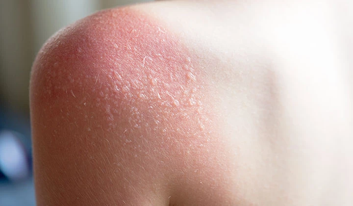 Sonnenbrand mit Bläschen aufgrund von Verbrennungen
