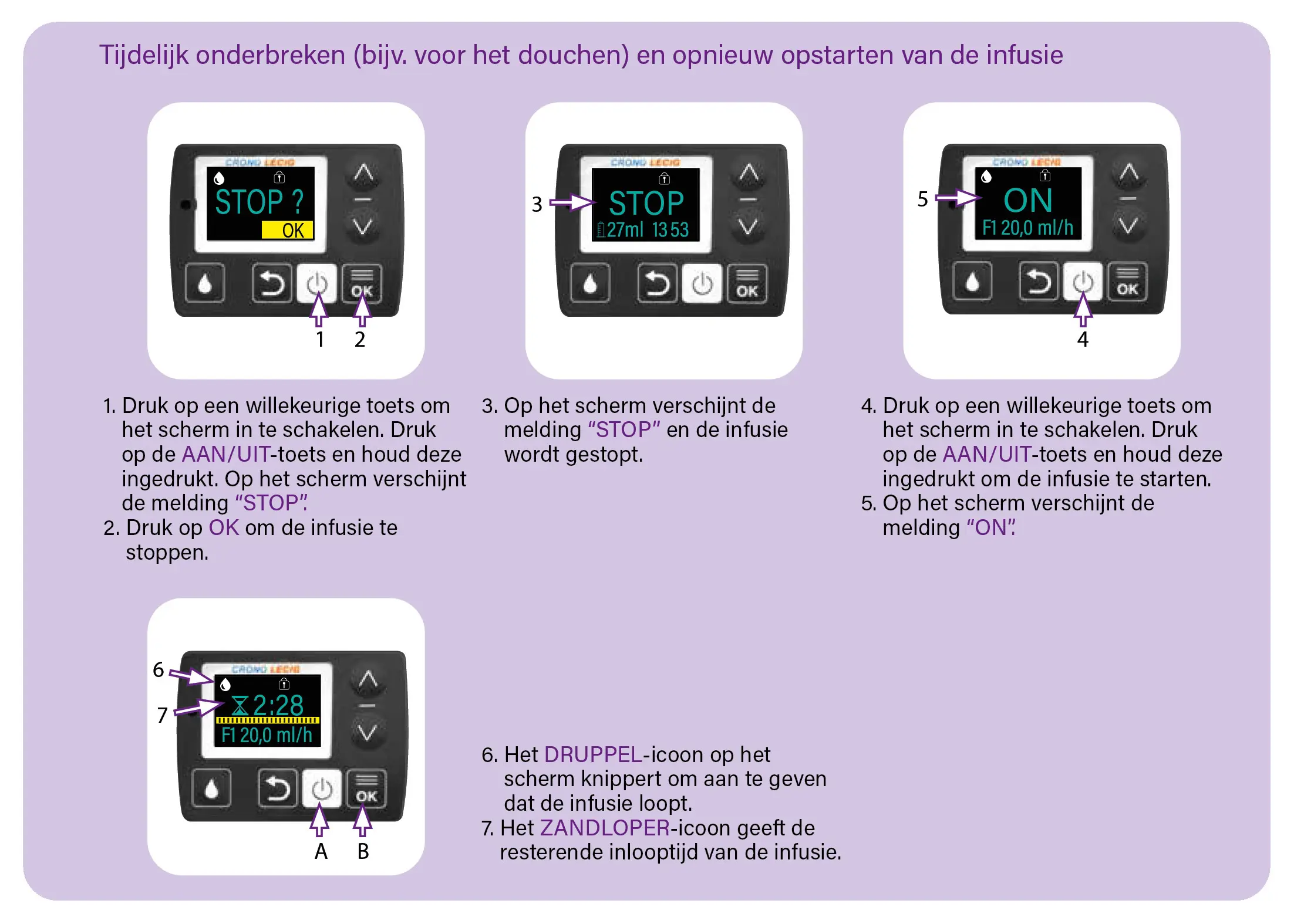 De arts bepaalt uw dosering door te kijken naar uw eerdere medicatie. Het kan nodig zijn om de dosis nog wat aan te passen tijdens de eerste paar weken van de behandeling. Normaal wordt er een grote dosis (dit wordt een ochtenddosis genoemd) toegediend in de ochtend als de behandeling is gestart. Zo krijgt u snel de goede hoeveelheid medicijn in uw bloed. Hierna wordt er steeds een kleine dosis (continue dosis) gegeven tijdens de uren dat u wakker bent (normaal ongeveer 16 uur). Als het nodig is dan kan uw arts besluiten om dit medicijn tot 24 uur per dag te geven. Eventueel kunnen er ook extra doses worden gegeven. Voor sommige patiënten kan het nodig zijn de continue dosis tijdens de dag hoger of lager te laten lopen. Dit is mogelijk middels de verschillende flowrates. De arts bespreekt met u over hoe en wanneer u extra doses kunt nemen. Indien u vaker dan 3 a 4 keer per dag een extra dosis nodig heeft, kan het soms wenselijk zijn de continue dosering aan te passen. De totale dagelijkse dosis, met de ochtenddosis (bolus), onderhoudsdosis en extra doses mag niet meer zijn dan 100 ml (wat overeenkomt met 2000 mg levodopa, 500 mg carbidopa en 2000 mg entacapon).