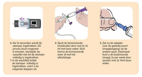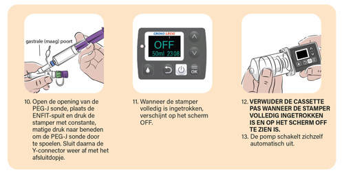 Voer onderstaande stappen uit voor de juiste werkwijze van de pomp in de avond: