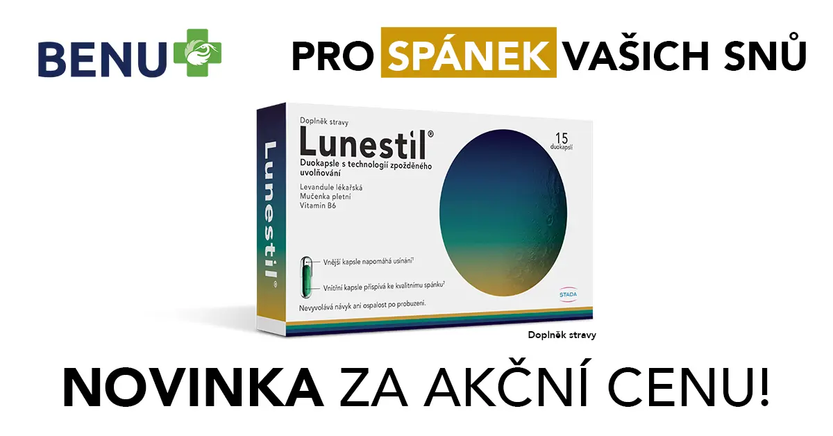 Cítíte se neustále unavení, jste často nemocní a ráno si připadáte, jako byste snad vůbec nespali? Dlouhodobý spánkový deficit je spojen nejen s chronickou únavou, ale také s oslabenou imunitou, vyšším rizikem vzniku a rozvoje kardiovaskulárních onemocnění, obezity a diabetu. Pokud chcete podpořit své zdraví, začněte podporou spánku, která je na BENU v podobě inovativního doplňku stravy Lunestil® do konce října za akční cenu 159 Kč. Zdraví je příliš cenné na to, abyste špatně spali! Podpořte spánek, podpoříte zdraví!