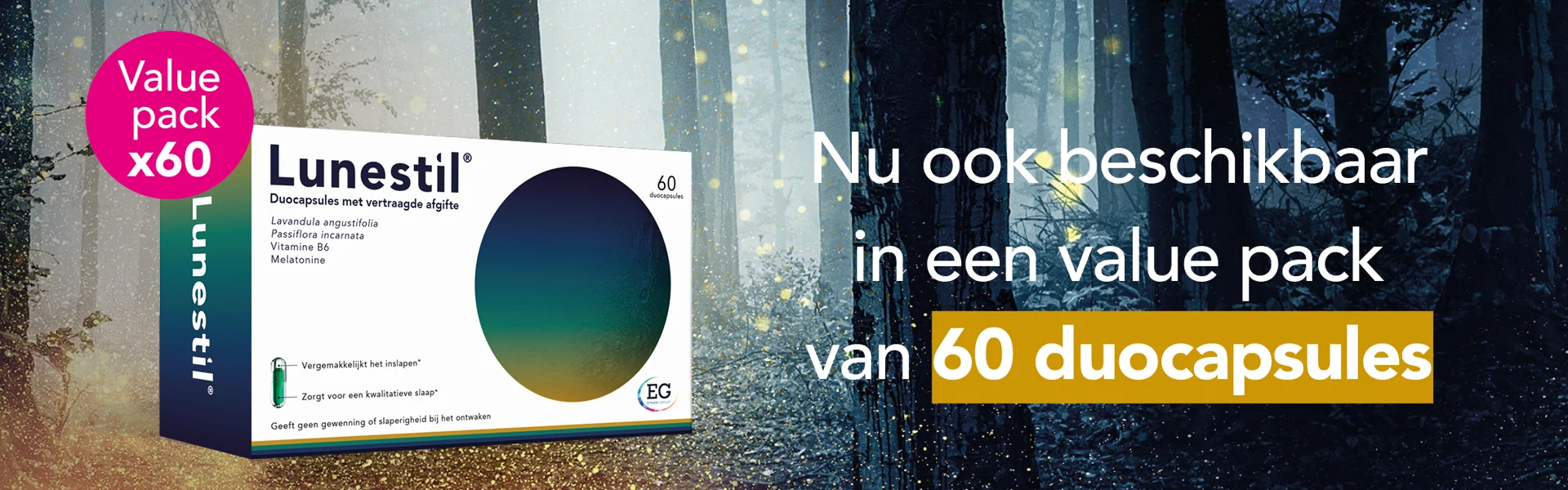 Lunestil biedt een innovatieve en unieke oplossing voor een goede nachtrust*. Dankzij de unieke combinatie van krachtige ingrediënten gecombineerd in een unieke duocapsule-technologie met dubbele werking, bevordert Lunestil de slaap om zo ’s ochtends uitgerust wakker te worden*.