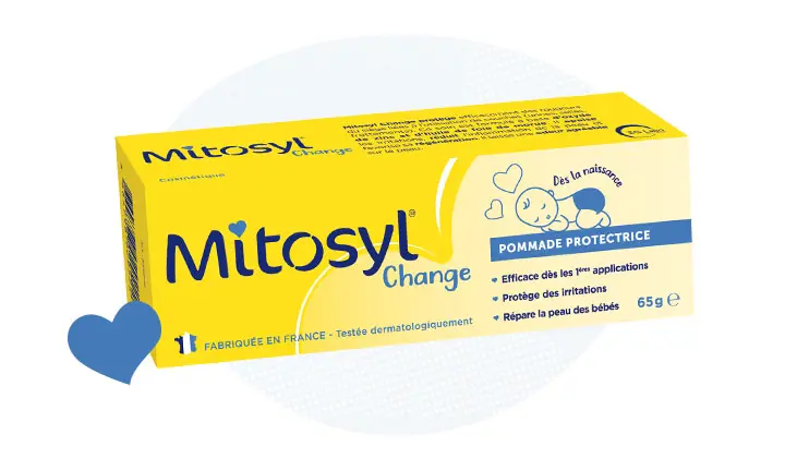 La Pommade Protectrice Mitosyl® Change protège des désagréments provoqués par la couche (urines, selles, frottements), prévient les rougeurs du siège en utilisation après le change et répare la peau de bébé dès la naissance.