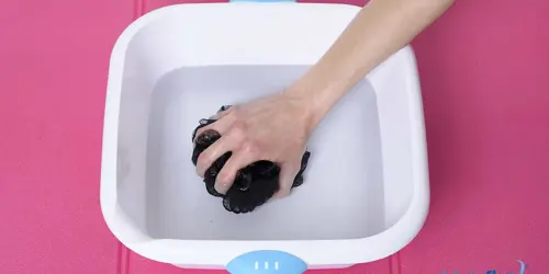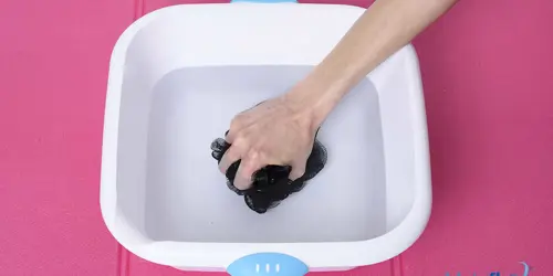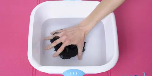 Les mains dans un évier ou une bassine remplie d’eau (froide ou tiède).