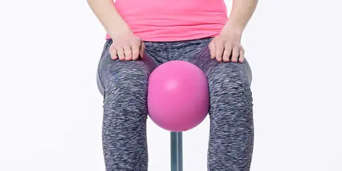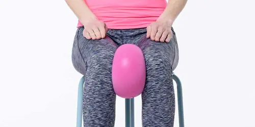 Plaats een ballon (of een kussen of badhanddoek) tussen je knieën.