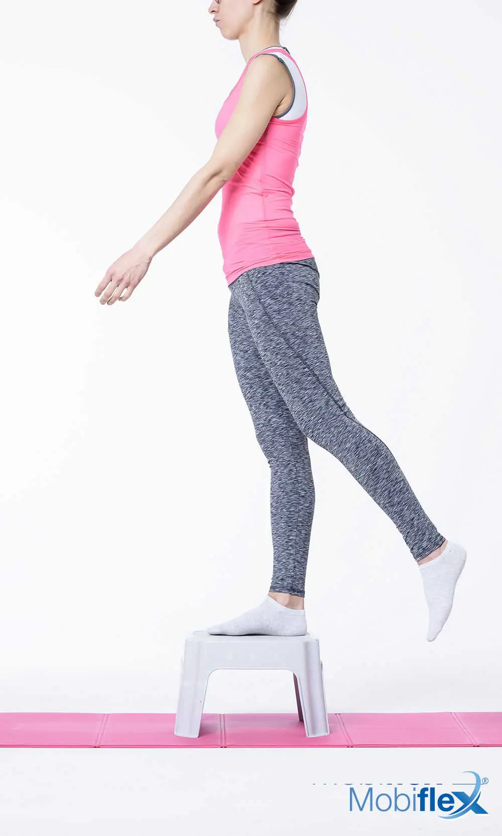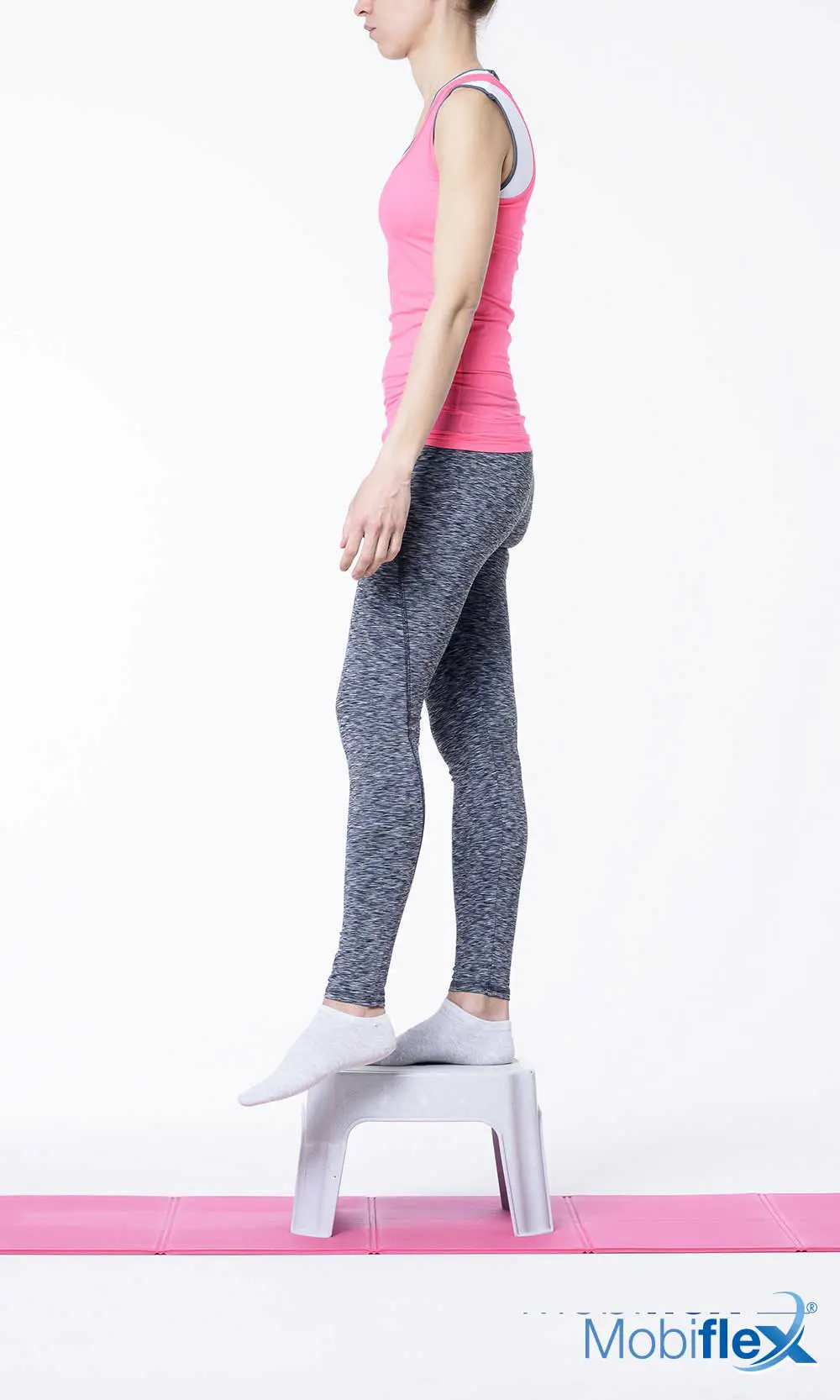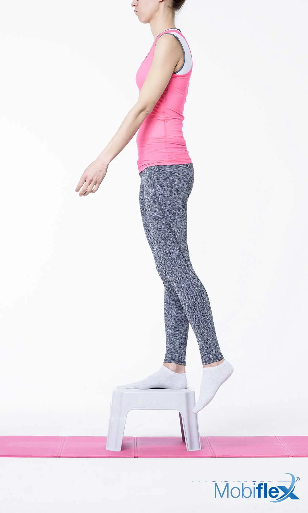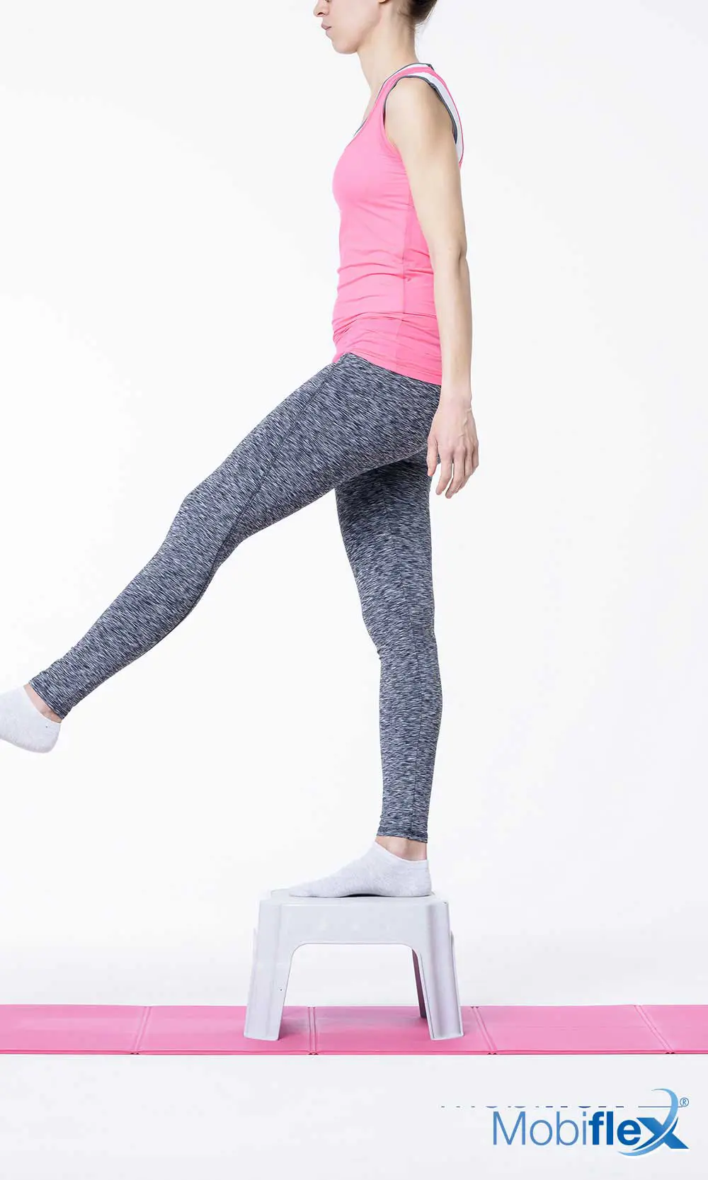 Sta op één been op een krukje of een andere stabiele steun, de schouders goed ontspannen, de blik naar voren gericht en de rug goed recht.