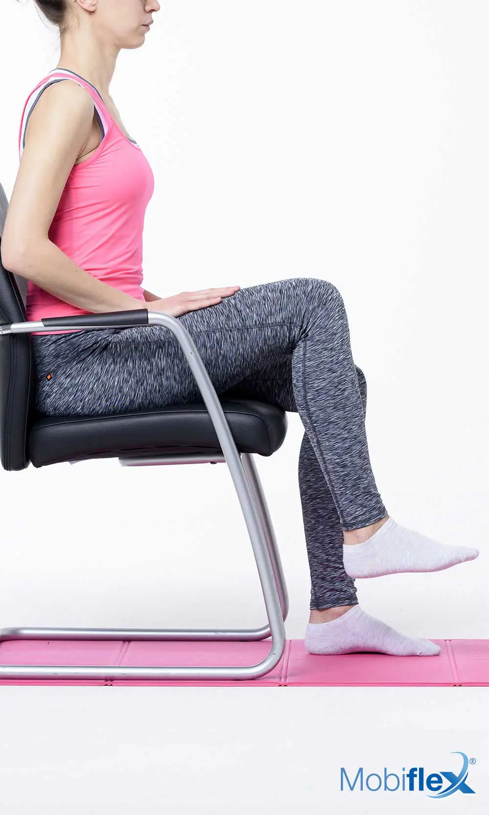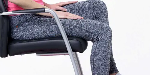 Hef je rechterknie op terwijl je uitademt, en laat hem weer zakken terwijl je inademt.
